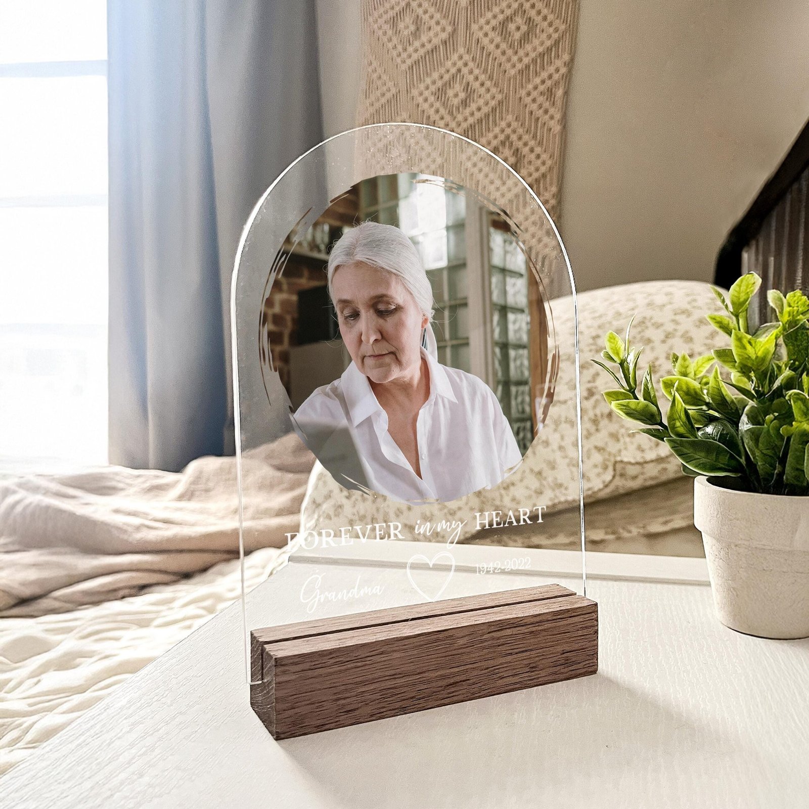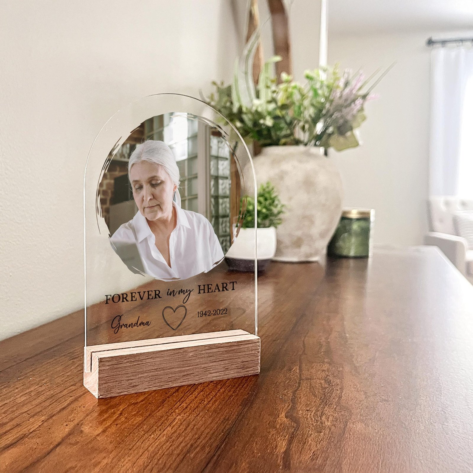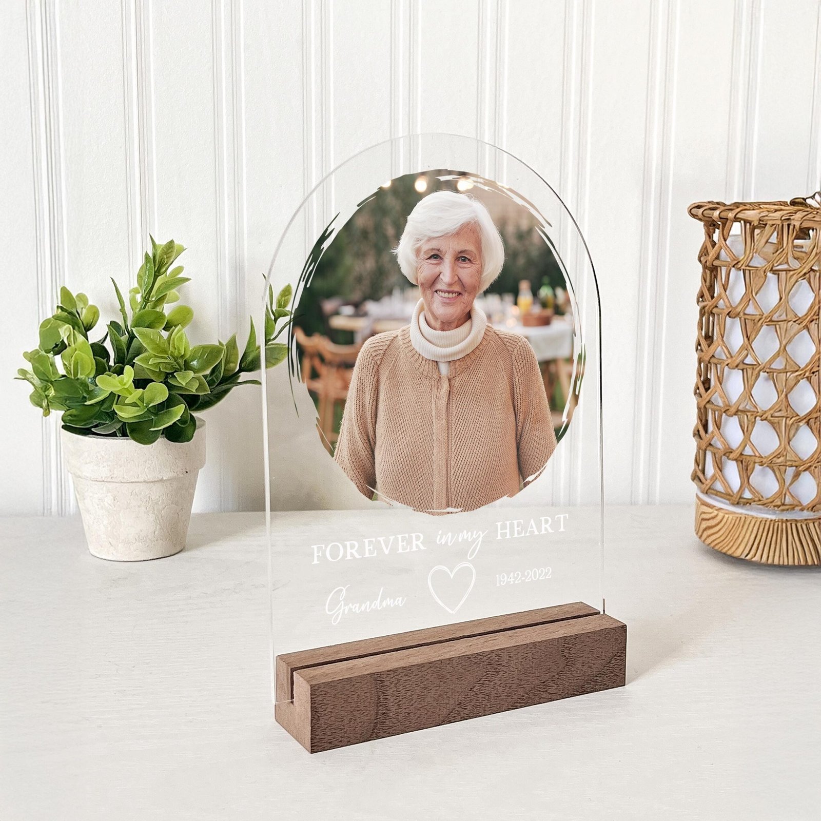 This elegant acrylic piece is a heartfelt gift to honor and remember someone special. Offer solace to those grieving and preserve a cherished memory with a personalized touch. Ideal for memorials, anniversaries, or anytime you want to keep their spirit close.