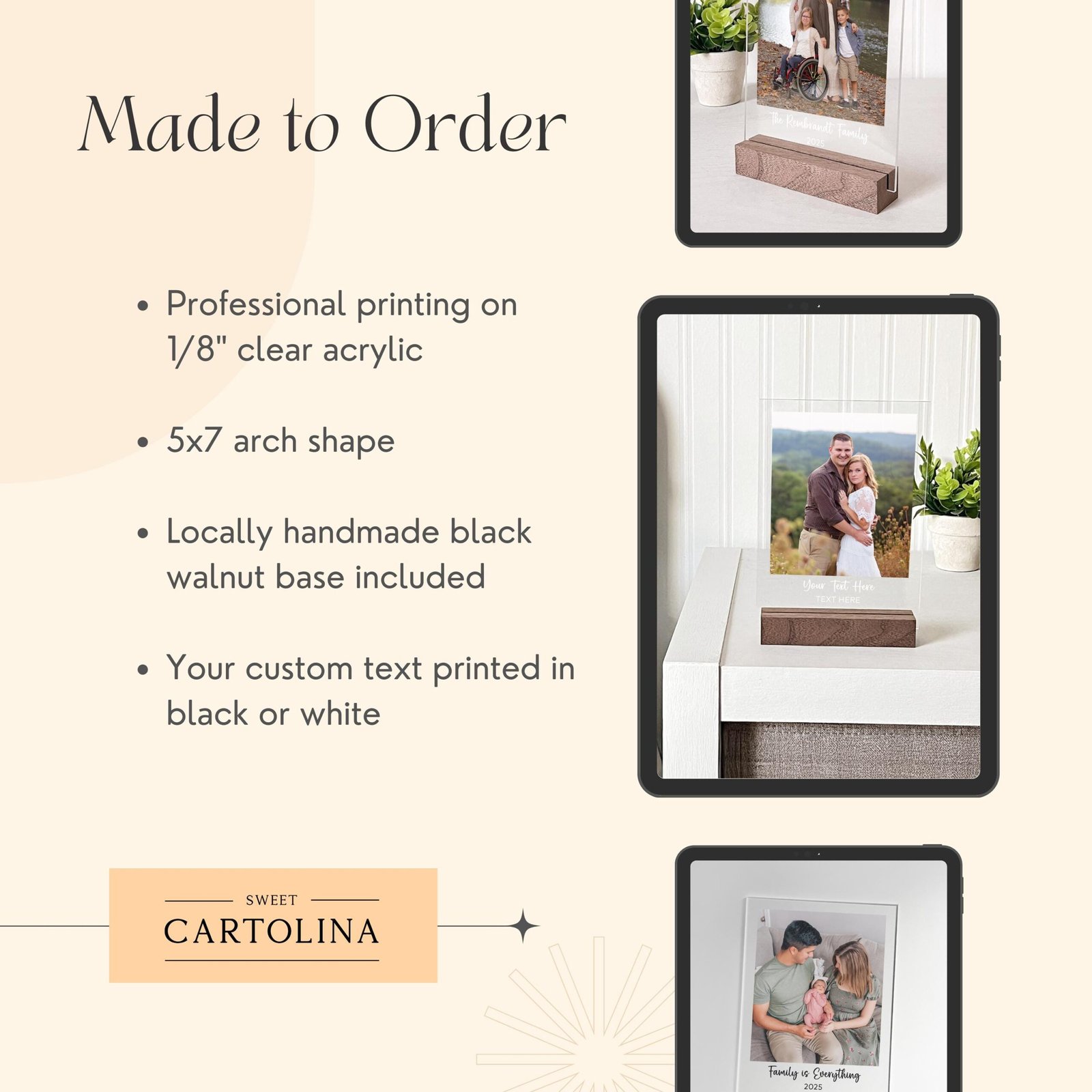 • 📸 Custom Photo Integration Upload a clear photo of your loved one to be featured prominently within the acrylic, capturing their essence in a delicate, lasting way.
