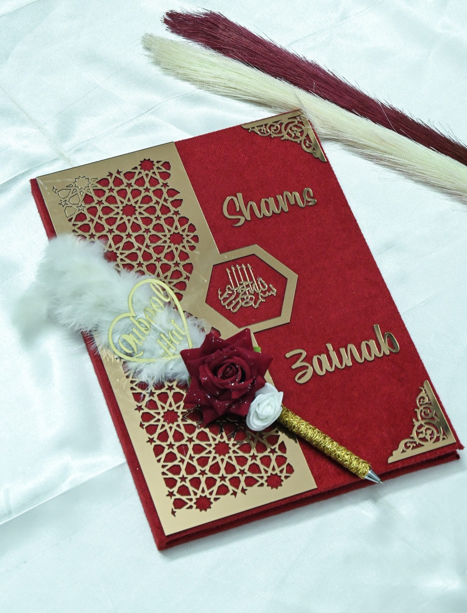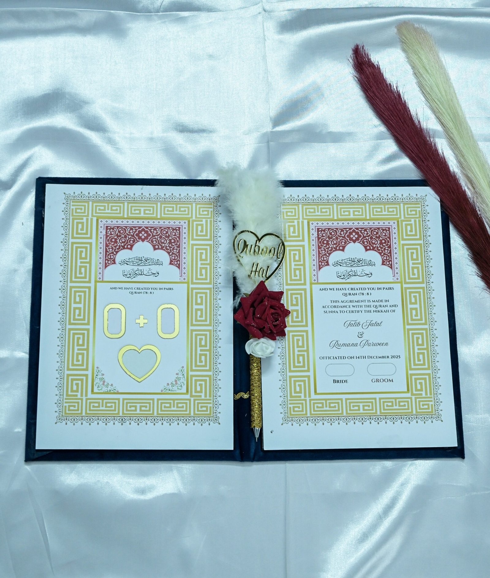 Whether you choose it for your own ceremony or gift it to a newlywed couple, this Nikah Nama carries emotional and spiritual depth. For an elevated experience, the Customised Star Design Nikah Nama Gift includes an elegant Qubool Hai pen, a symbolic and meaningful accessory that enhances the beauty and significance of your vows.