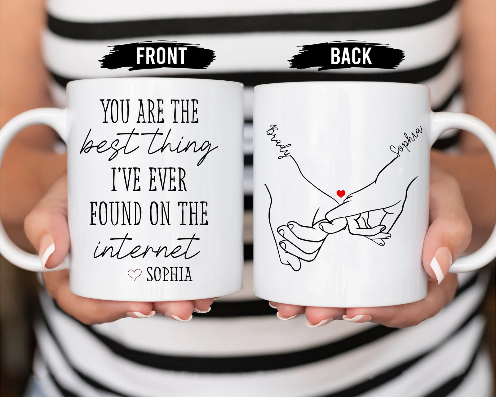 Our “You Are the Best Thing I Ever Found On the Internet” Mug is a delightful and humorous gift for him or her, perfect for Valentine’s Day, anniversaries, or any special occasion. Show your love and appreciation with this personalized mug that brings a touch of fun and sentimentality to their daily coffee or tea routine.